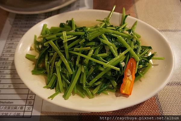 份量不少的炒空心菜,點來一口椒麻雞一口青菜吧!